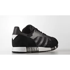 A deep shade of black covers everything in sight including the inner lining, laces and stripes across the sidewall. A block coloured misole balances the look underfoot with crisp white sections against that dark palette.
