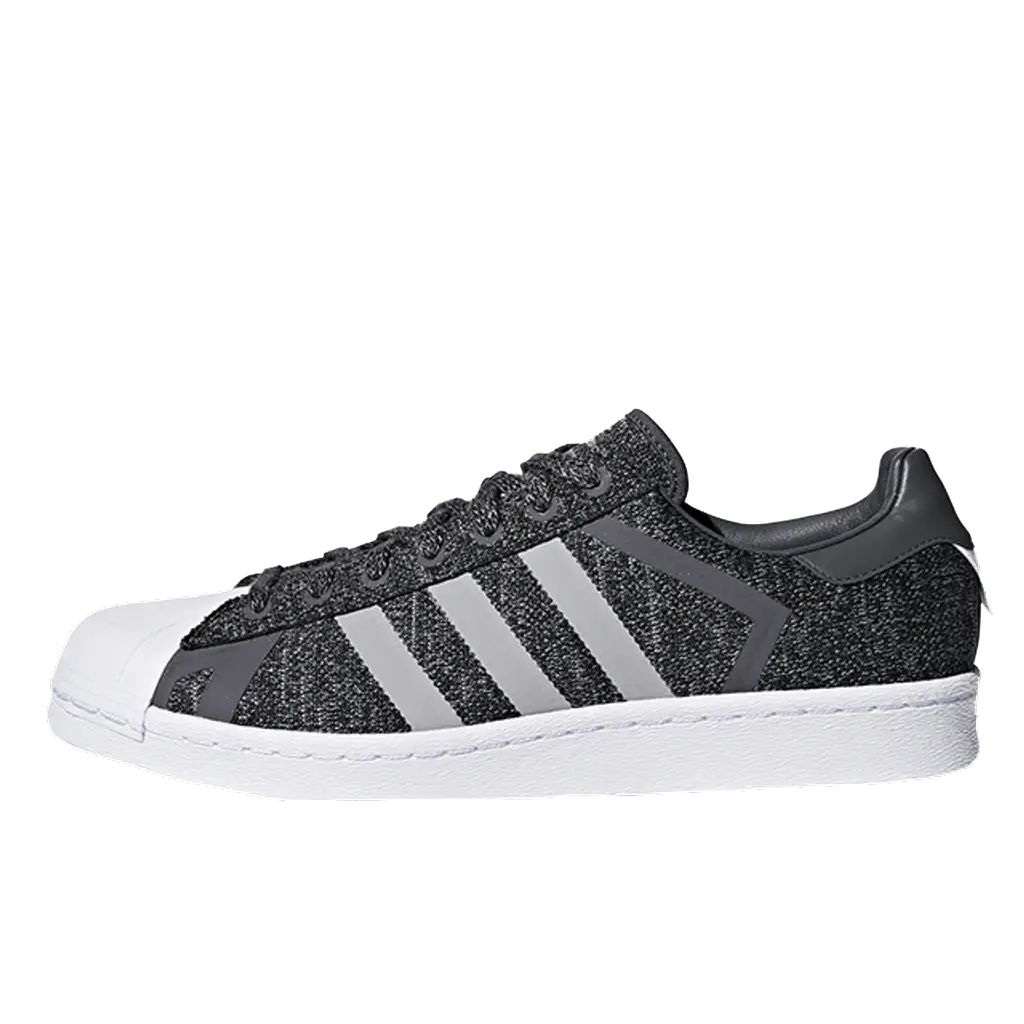 Soft crafted material features on the upper of the WM x adidas Superstar. A gradient like blend of grey and black adds some serious appeal to this iconic silhouette. As with previous White Mountaineering collaborations, several signature details set this apart as an exclusive. That includes the addition of arrow shapes which on this pair, features with synthetic grey taping.
