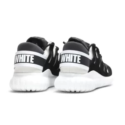To complete the look, a full white Tubular sole sits underfoot which gives lightweight cushioning and support. Finally, the letters ‘WHITE’ are emblazoned to the heel strap and a set of black rope laces are included.