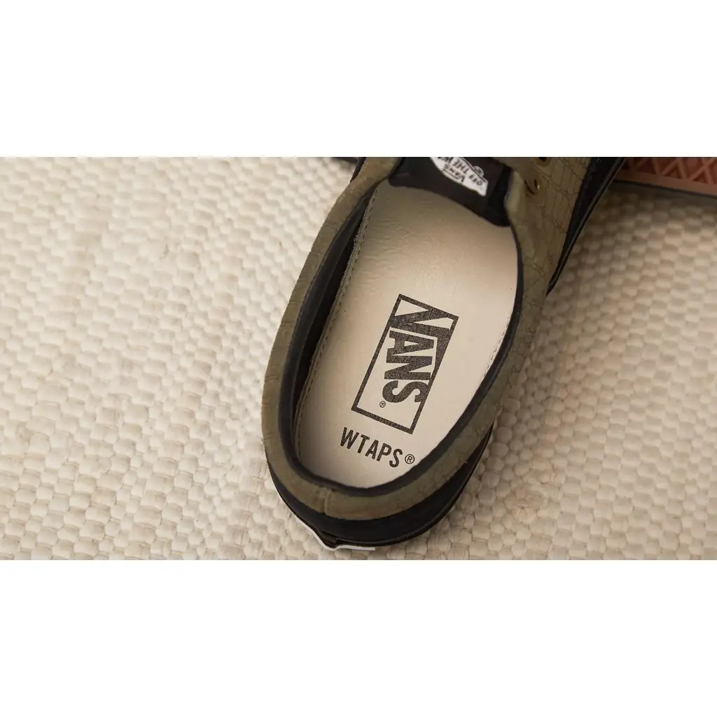Channelling the Amazonian forest with an anaconda inspired design, the WTAPS x Vans Vault OG Era LX Navy Croc is the perfect combination of Vans’ heritage and WTAPS passion for quality and classic. Dressed in a moss green shade with rich blue suede overlays, the sneaker also features gold tone hardware, and Vans’ signature ‘Off the Wall’ patch across the heel. To round it all off, a blacked out sole and iconic waffle pattern is present underfoot.