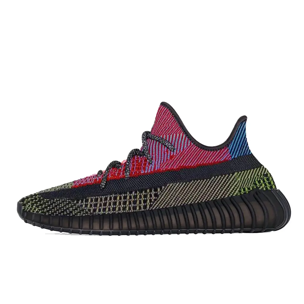 While it may look like the ‘Black’ from a distance, the Primeknit upper is actually accented by a ton of other colours, including red at the top half, blue by the heel, and yellow on the bottom half. This is all contrasted by clean white criss crossing for an even more eye catching look, and tied together via a pair of 3M infused rope laces.