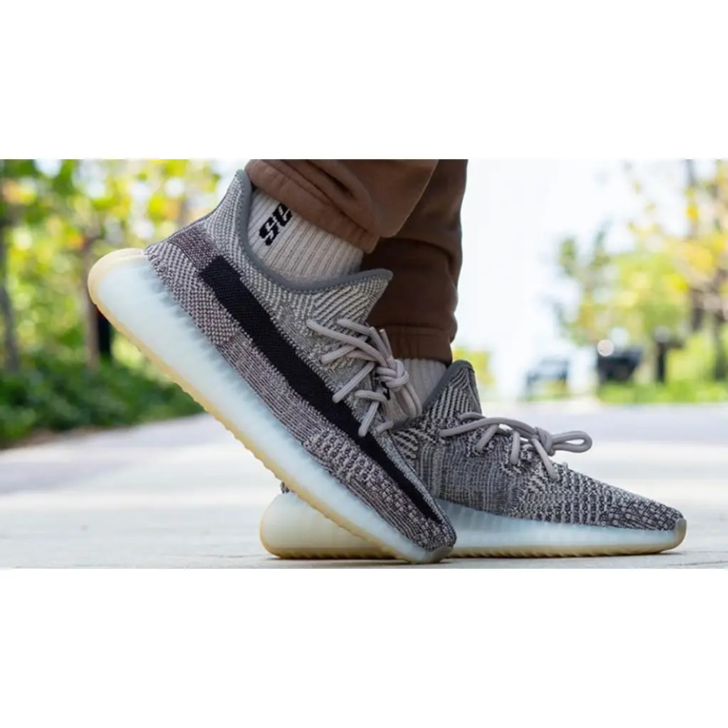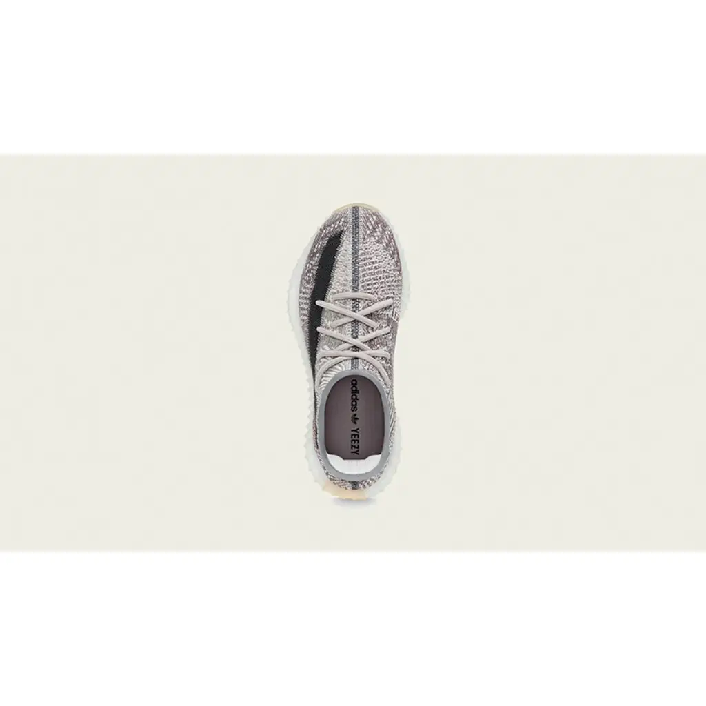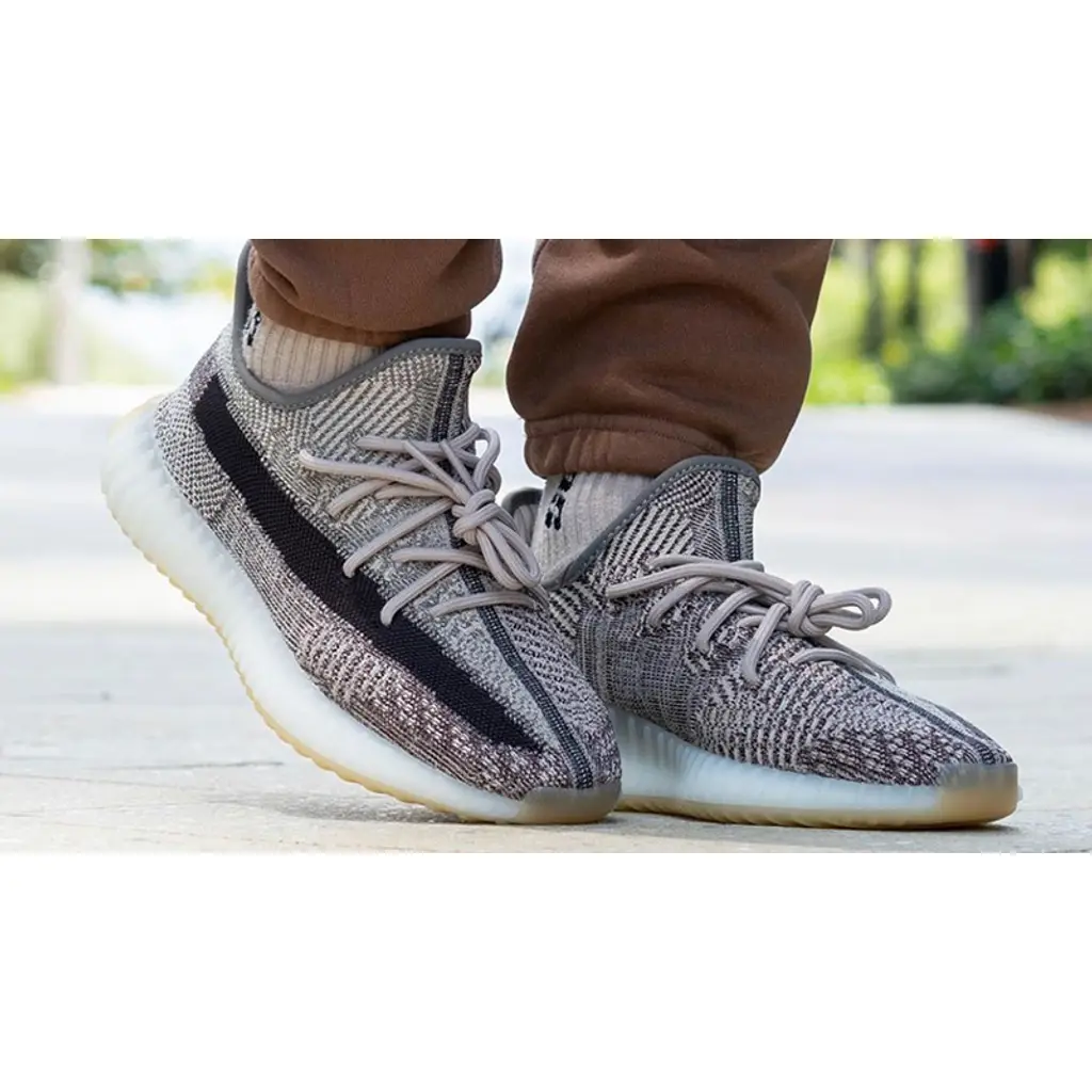 Down below, adidas have infused the Zyon with their award winning Boost technology for an insane amount of comfort and energy return. This is housed within an off-white unit, and then lined with a slither of gum rubber for durable traction with every step. Interestingly enough, Ye has decided to remove the heel tab from the back of this shoe, which strays away from some of the most recent 350 V2s.