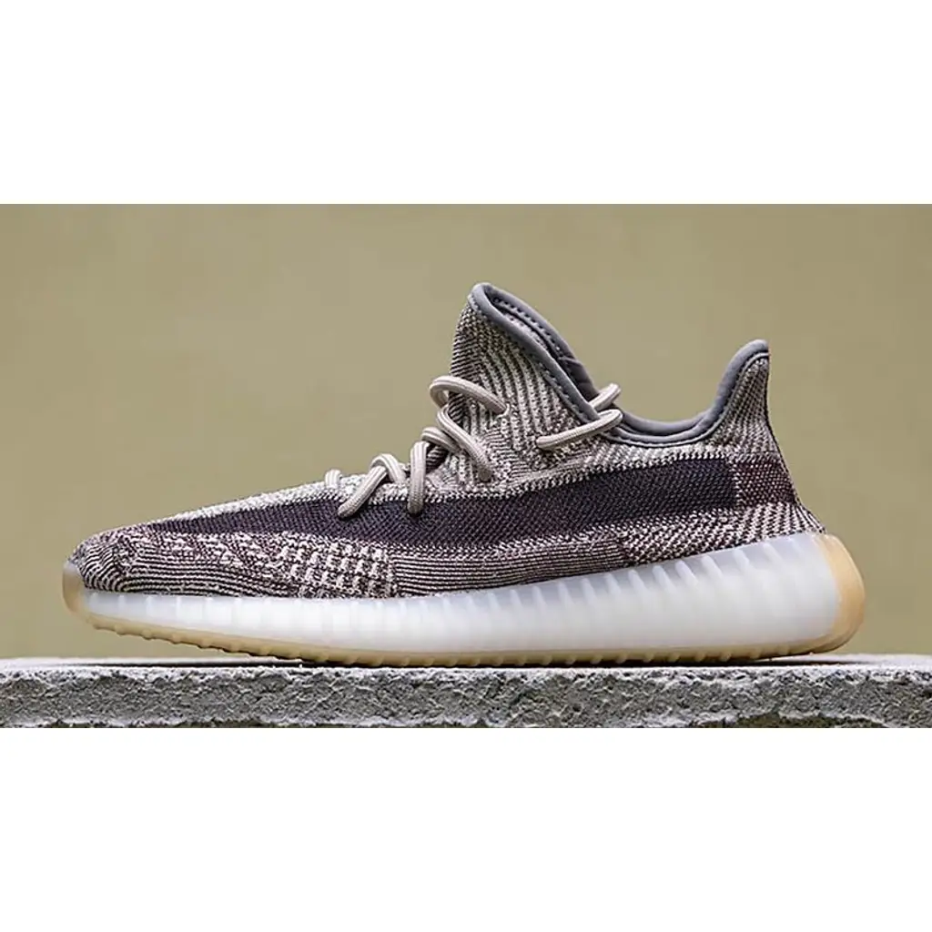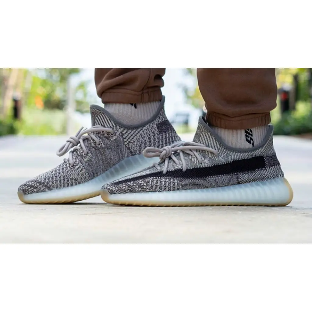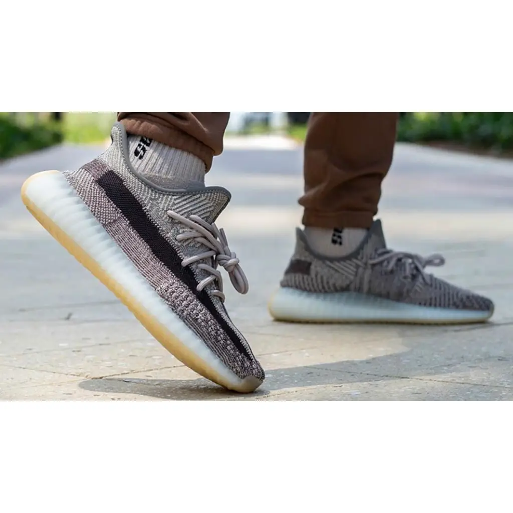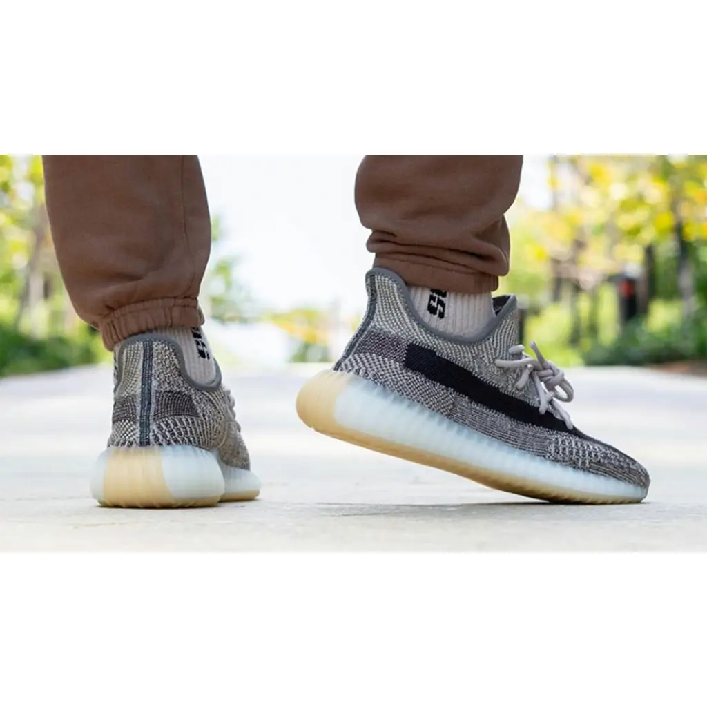 Down below, adidas have infused the Zyon with their award winning Boost technology for an insane amount of comfort and energy return. This is housed within an off-white unit, and then lined with a slither of gum rubber for durable traction with every step. Interestingly enough, Ye has decided to remove the heel tab from the back of this shoe, which strays away from some of the most recent 350 V2s.