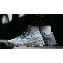 Doused in an ultra clean grey hue with light orange accents throughout for a pop of contrast, the Yeezy Boost 700 Inertia is finely crafted from luxe suede, premium leather, and breathable mesh, and rests atop a chunky Boost infused midsole which is finished off with a tough and durable gum rubber outsole underneath.