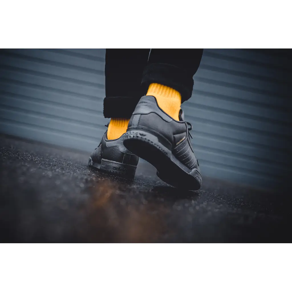 The Powerphase Black arrives as the third colourway for this silhouette, otherwise known as the Yeezy Calabasas. It’s one of several releases from Kanye West and adidas coming in early 2018. That dark colourway extends across the entire upper, even featuring to the midsole underfoot. The only contrast comes in the form of gold coloured ‘Calabasas’ writing which sits across the sidewall along with that red and green adidas Originals logo.
